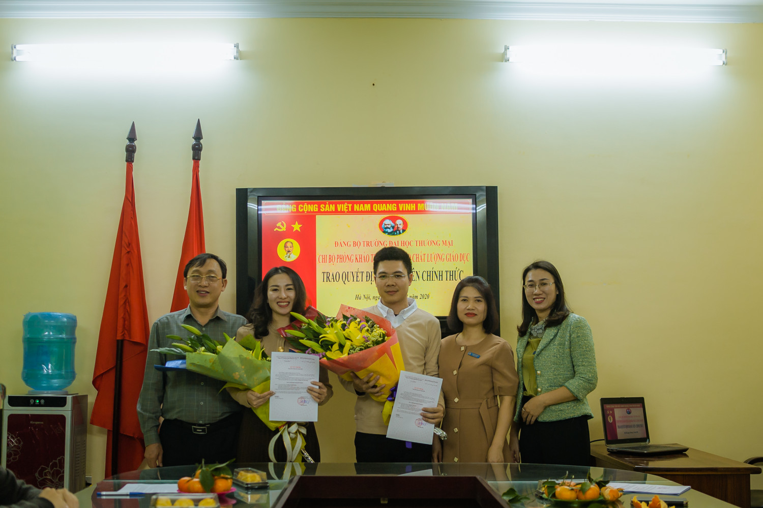 Cùng ngày, đồng chí Nguyễn Đức Nhuận, Bí thư Chi bộ thay mặt chi bộ phòng cũng đã tổ chức Lễ trao quyết định Công nhận đảng viên chính thức của Đảng ủy trường Đại học Thương mại cho hai đảng viên dự bị Nguyễn Trung Hải và Đặng Thị Hải Hằng.
