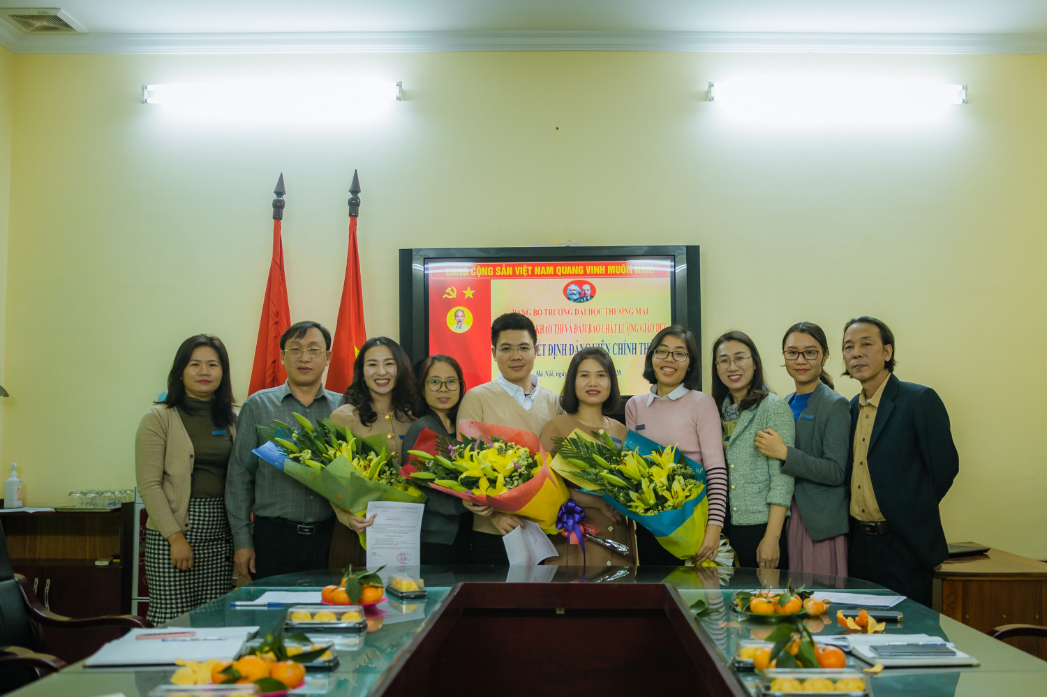 Căn cứ Quyết định kết nạp đảng viên số 29-QĐ/ĐU ngày 12/11/2020 của Đảng ủy trường Đại học Thương mại, chiều ngày 10/12/2020, Chi bộ phòng Khảo thí và Đảm bảo chất lượng giáo dục đã tổ chức Lễ kết nạp đảng viên mới đối với quần chúng ưu tú Nguyễn Thị Thu Hương với sự tham dự của toàn bộ đảng viên trong chi bộ.