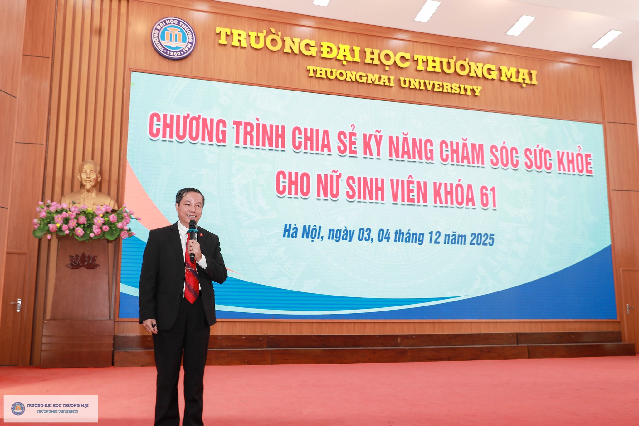 Nhằm tuyên truyền tư vấn về giới tính, sức khỏe sinh sản cho các nữ sinh viên, giúp sinh viên chủ động trong việc chăm sóc sức khỏe; đồng thời thể hiện sự chăm lo của Nhà trường tới cuộc sống của sinh viên đang học tập tại Trường, đặc biệt nữ sinh viên; thiết thực góp phần thực hiện mục tiêu phát triển bền vững (SDG) của Liên Hợp quốc, trong thời gian 02 ngày (03 và 04/12/2025), chương trình “Chia sẻ kỹ năng chăm sóc sức khỏe cho nữ sinh viên khóa K61 Trường Đại học Thương mại” đã được tổ chức tại Trường với sự phối hợp của Công ty Cổ phần Dược – Thiết bị y tế Sông Hàn.